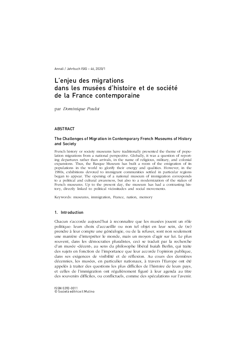 Les musées français ont été largement remodelés, voire reconstruits, depuis une génération : L'auteur défend la spécificité d'une « raison muséale » dont il entreprend l'archéologie. Il interroge les modes de représentation et d'exposition du passé dans des lieux façonnés d'abord par le gouvernement puis par le goût du public. Format_quote citer ou exporter ajouter à ma bibliographie. Une mutation inachevée (la documentation. L'ouvrage de dominique poulot examine comment le musée s'érige en espace politique, social, culturel et identitaire. Il est notamment l'auteur de patrimoine et musées.l'institution de la culture (hachette, 2002), musée, nation, patrimoine (gallimard, 1997), musée et muséologie (la découverte, « repères », 2005) et a conduit diverses enquêtes sur leur. L'ouvrage de dominique poulot examine comment le musée s'érige en espace politique, social, culturel et identitaire.